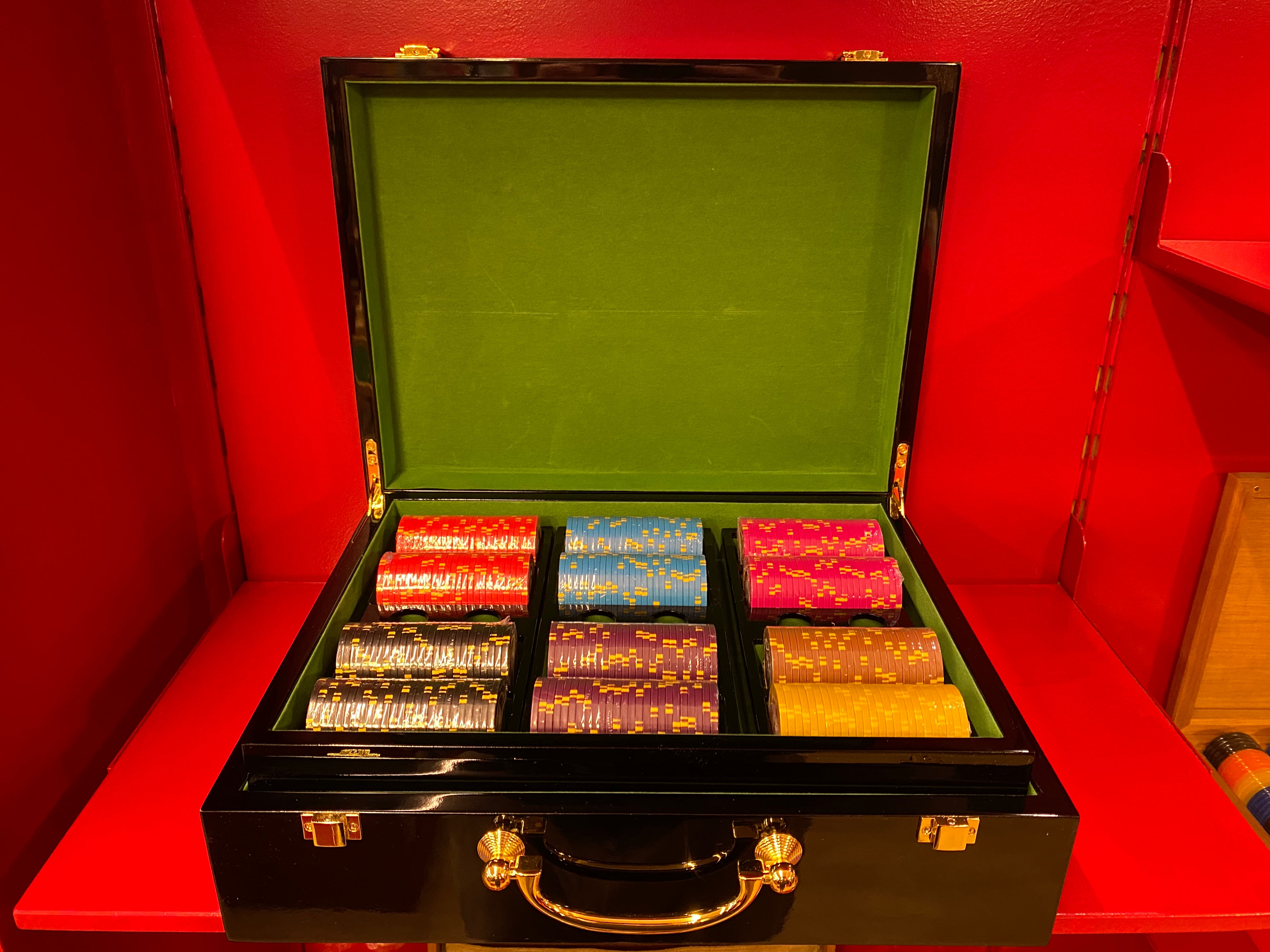 Un modèle de luxe, comme cette mallette en cuir grainé noir de 400 jetons dessinée dans un élégant intérieur velour beige, peut approcher le millier d’euros.