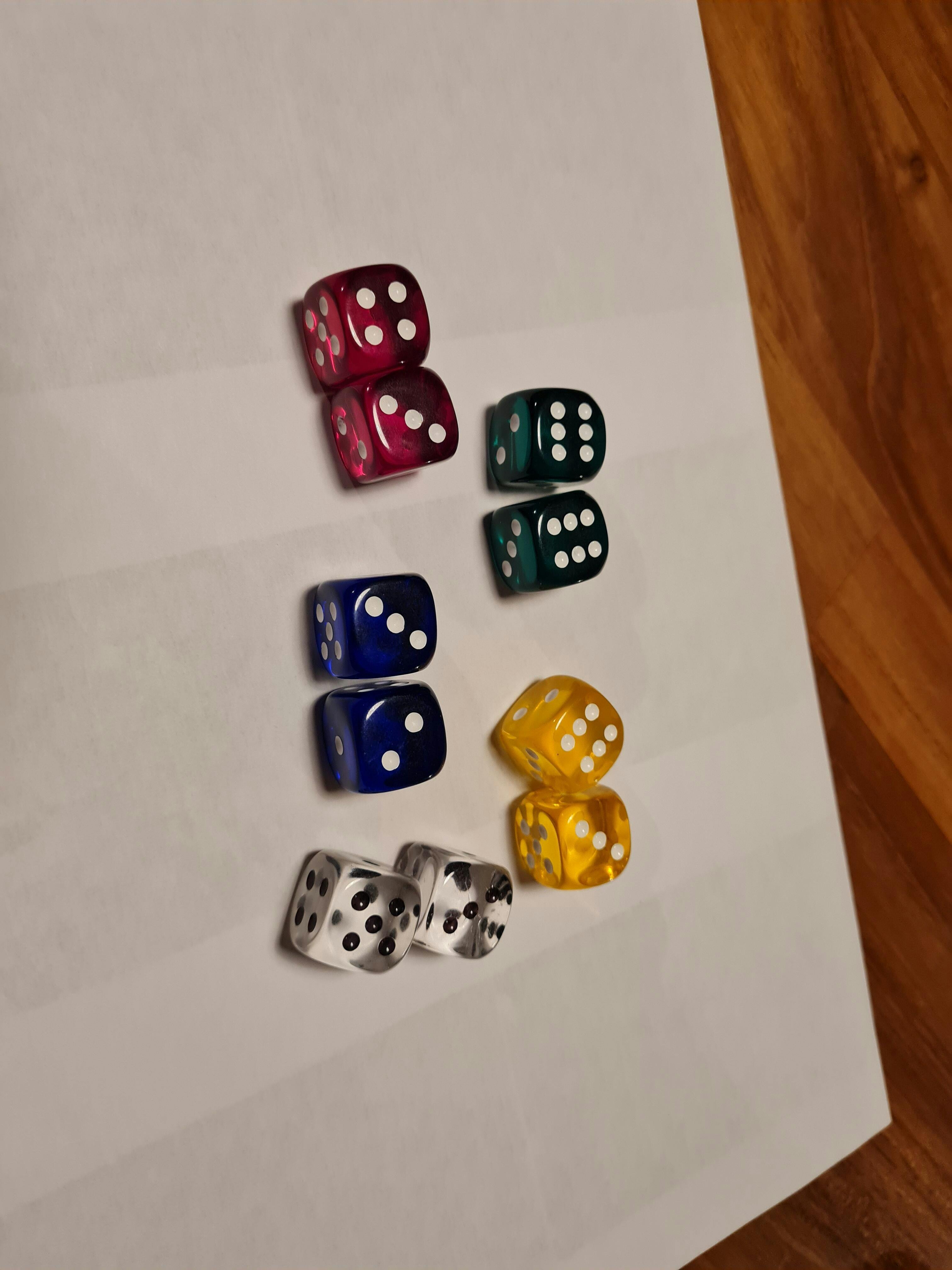 Dés vendus à l'unité, en résine naturelle, de couleur 6 couleurs différe...