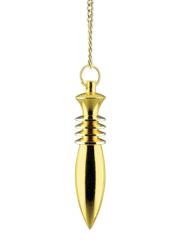 Pendule classique égyptien de type Karnak avec une finition doré à l'or fin. Plus grand et plus lourd, il comporte quatre anneaux en son col. Poids : environ 30 grammes - longueur environ 5,4 cm - diamètre 1,1 cm.