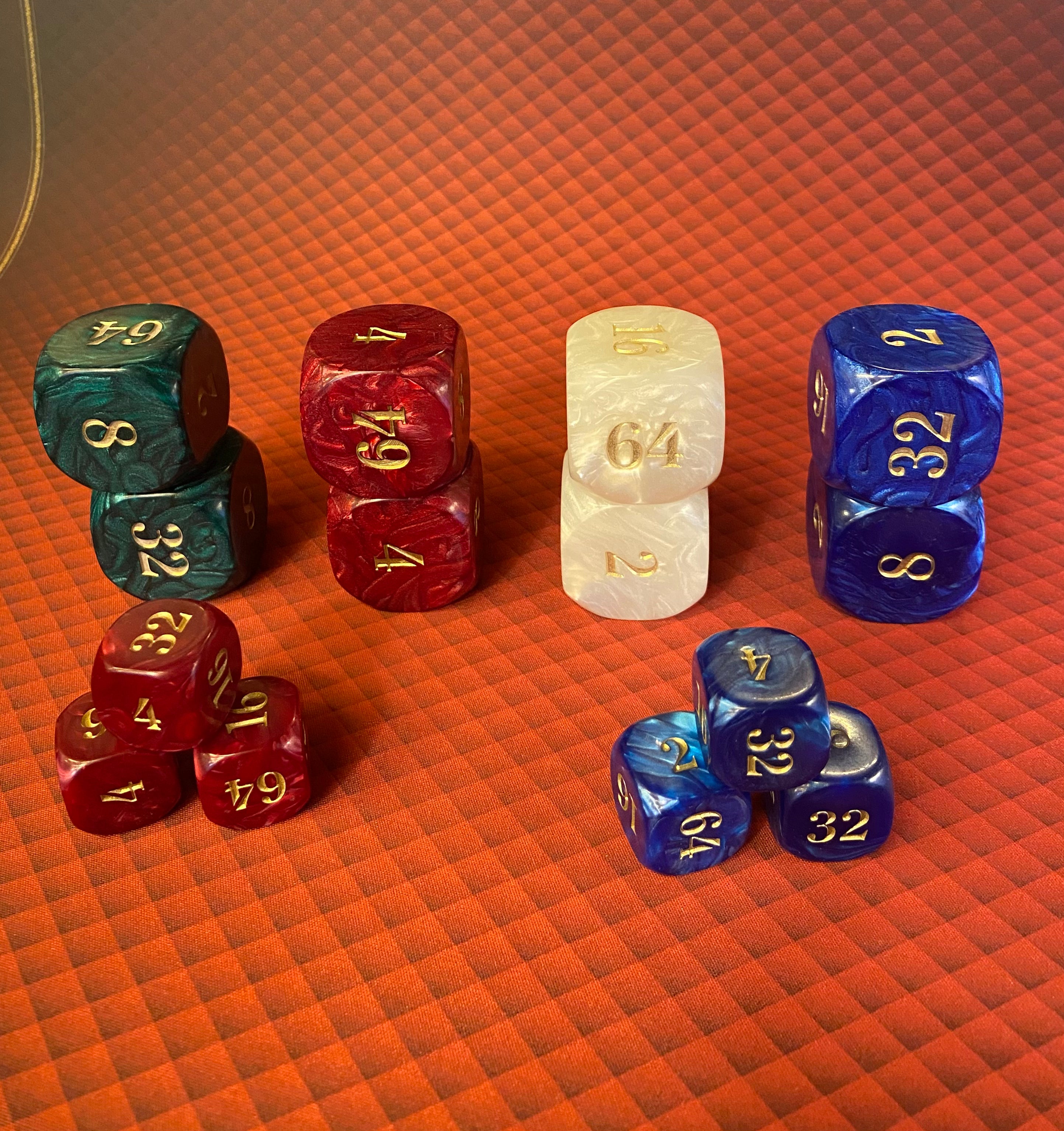 Cubes, videaux, dés doubleur pour Backgammon en résine.